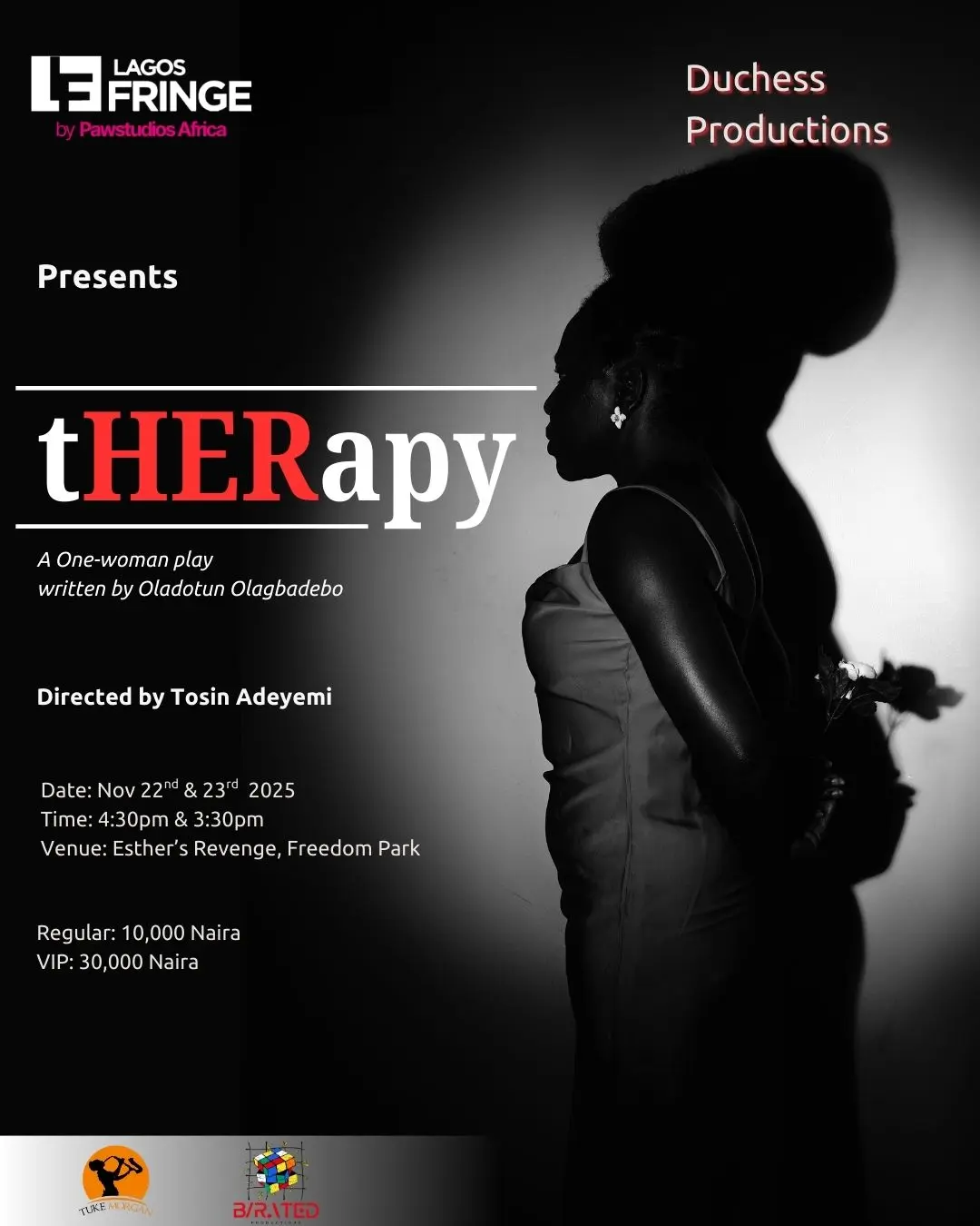 tHERapy is a compelling one-woman play that intimately portrays the life of Deola, a young Nigerian woman navigating the complexities of identity, family and societal expectations. The play intricately weaves together vignettes exploring themes of familial relationships, particularly the subtle dynamics within her extended family, love and heartbreak, and the challenges of gender in Nigerian culture, including situations of sexual harassment and assault. Through Deola’s candid storytelling, the play offers a poignant reflection on the strength and vulnerability of womanhood.